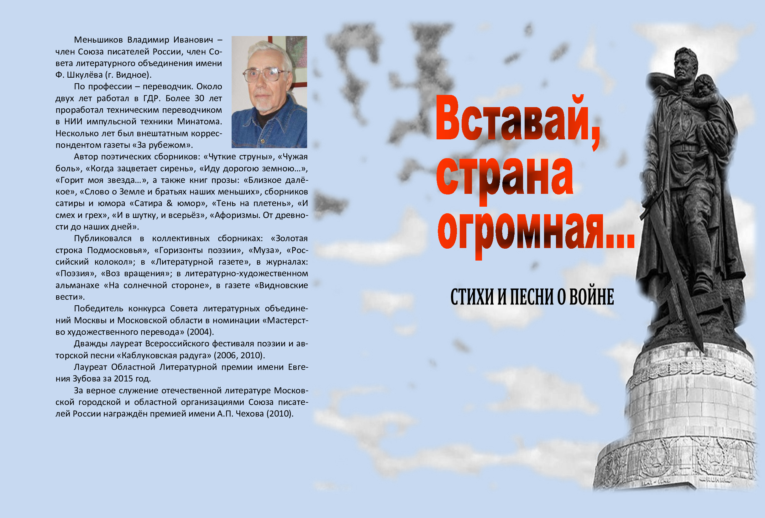 Вставай, страна огромная. Стихи и песни о войне:/стихи. Меньшиков В.И. –М.: Издатель А.А. Зусман, 2021– 90с.