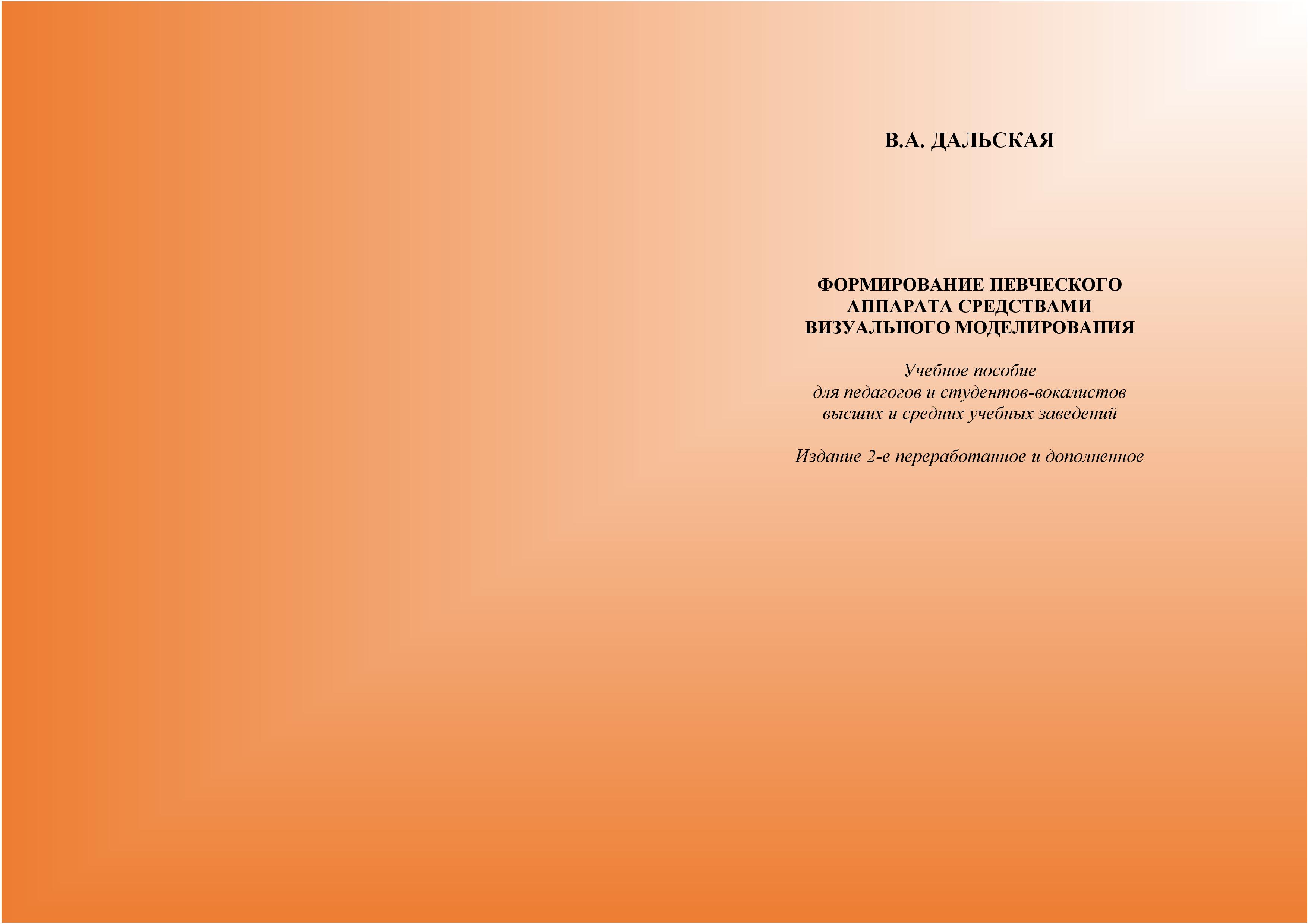 Формирование певческого аппарата средствами визуального моделирования. Учебное пособие для педагогов и студентов-вокалистов высших и средних учебных заведений.:/проза. Дальская В.А. –М.: Издатель А.А.Зусман,2019-56с.