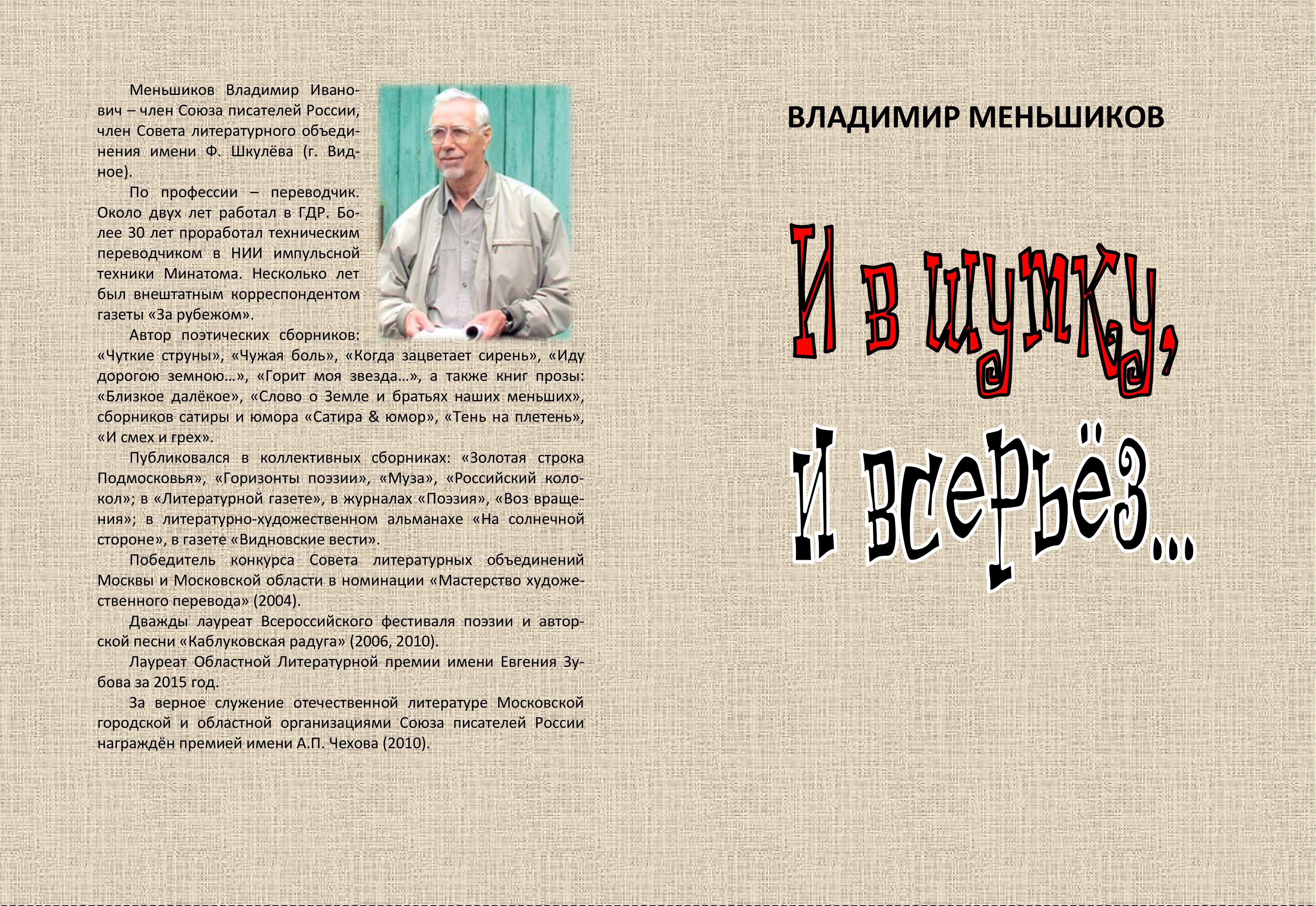 И в шутку, и всерьёз.:/проза. Меньшиков В.И. – М.: Издатель А.А. Зусман, 2019–96с.