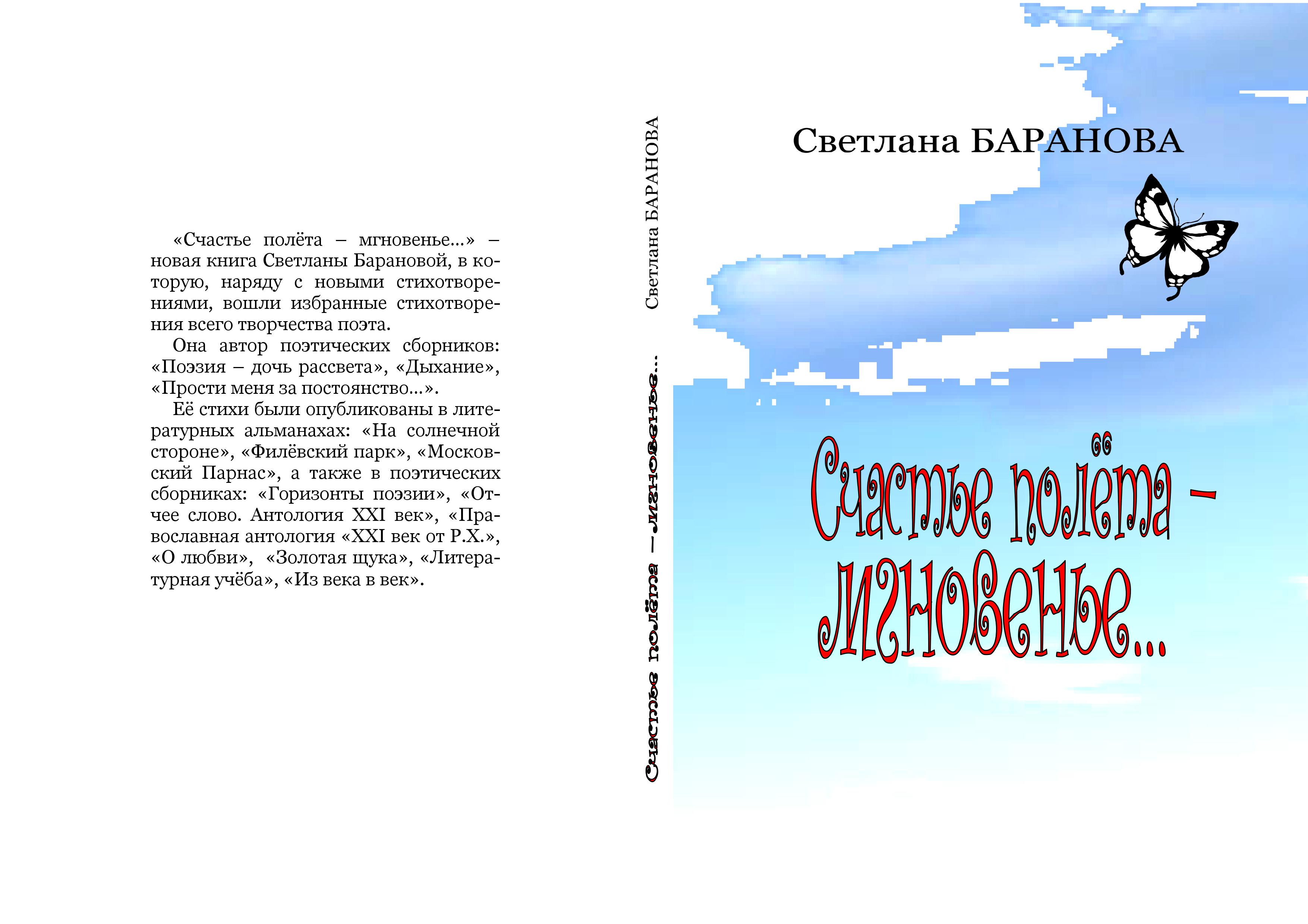 Счастье полёта – мгновенье...:/стихи. Баранова С.И. – М.: Издатель А.А. Зусман, 2012-130с.